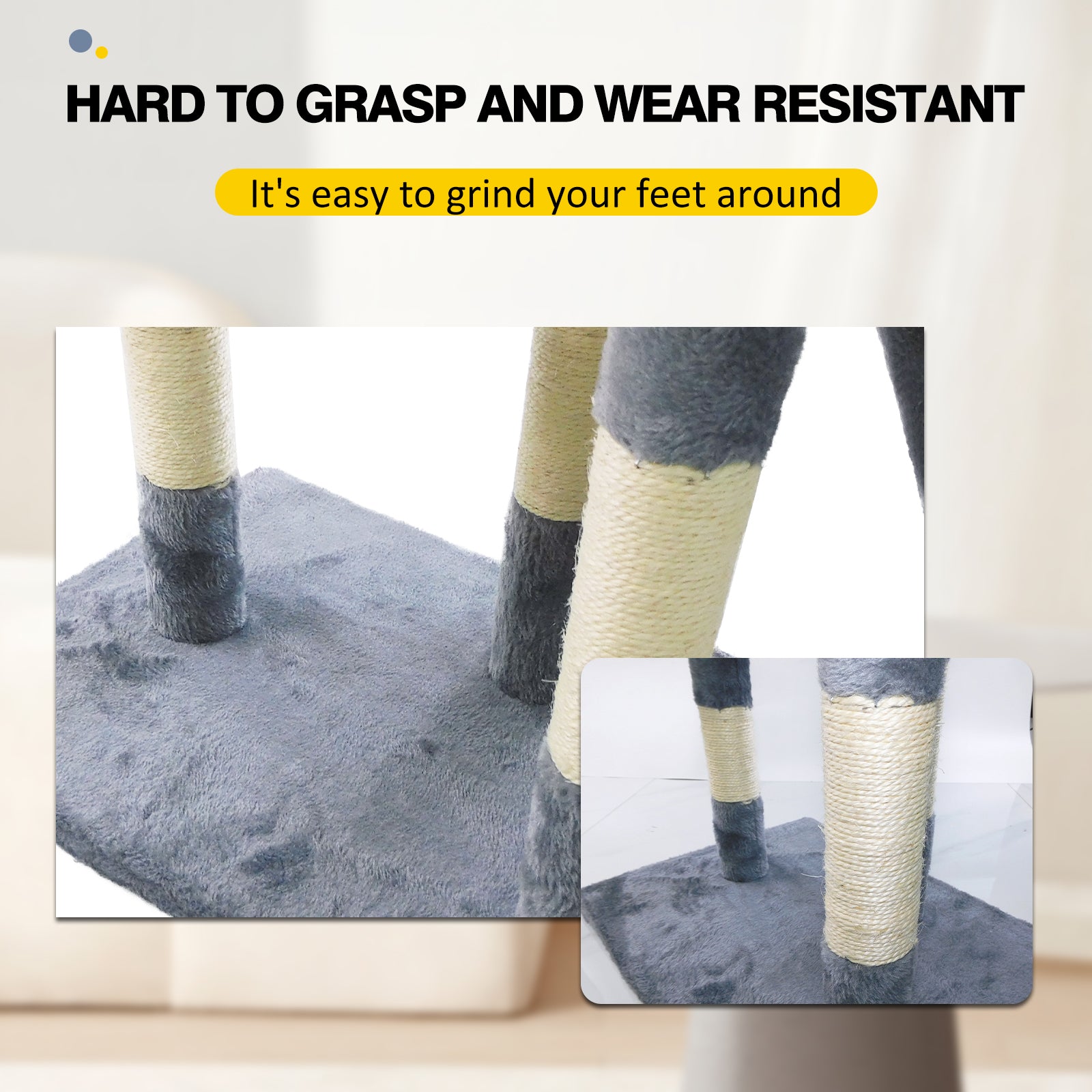 · Soft plush and natural sisal rope coiled posts are strong and sturdy enough to survive from those sharp little claws. This tall cat scratching post keeps your cat from scratching your furniture and allows your cat to have a fun way to exercise.